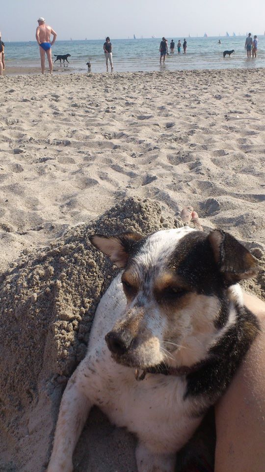 Relaxen am Strand, halb zugebuddelt