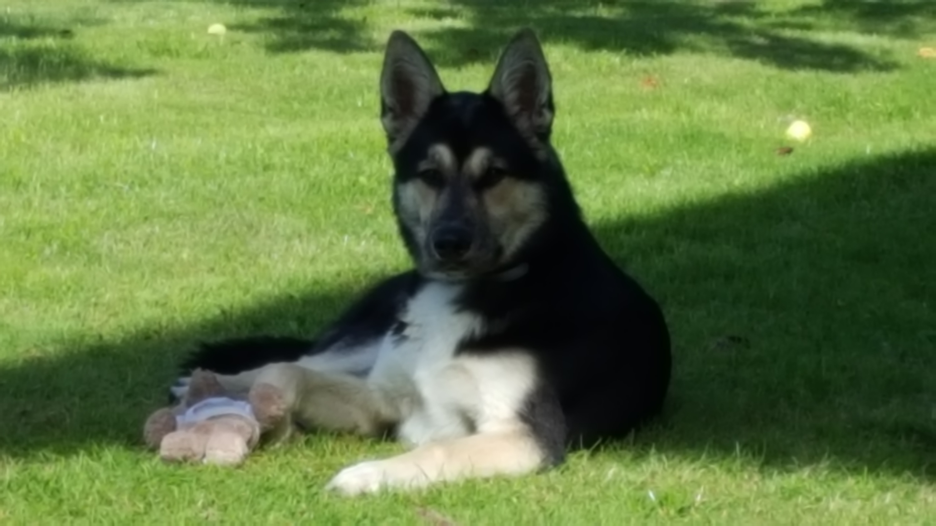 Sam am Relaxen im Garten und Teddy :)