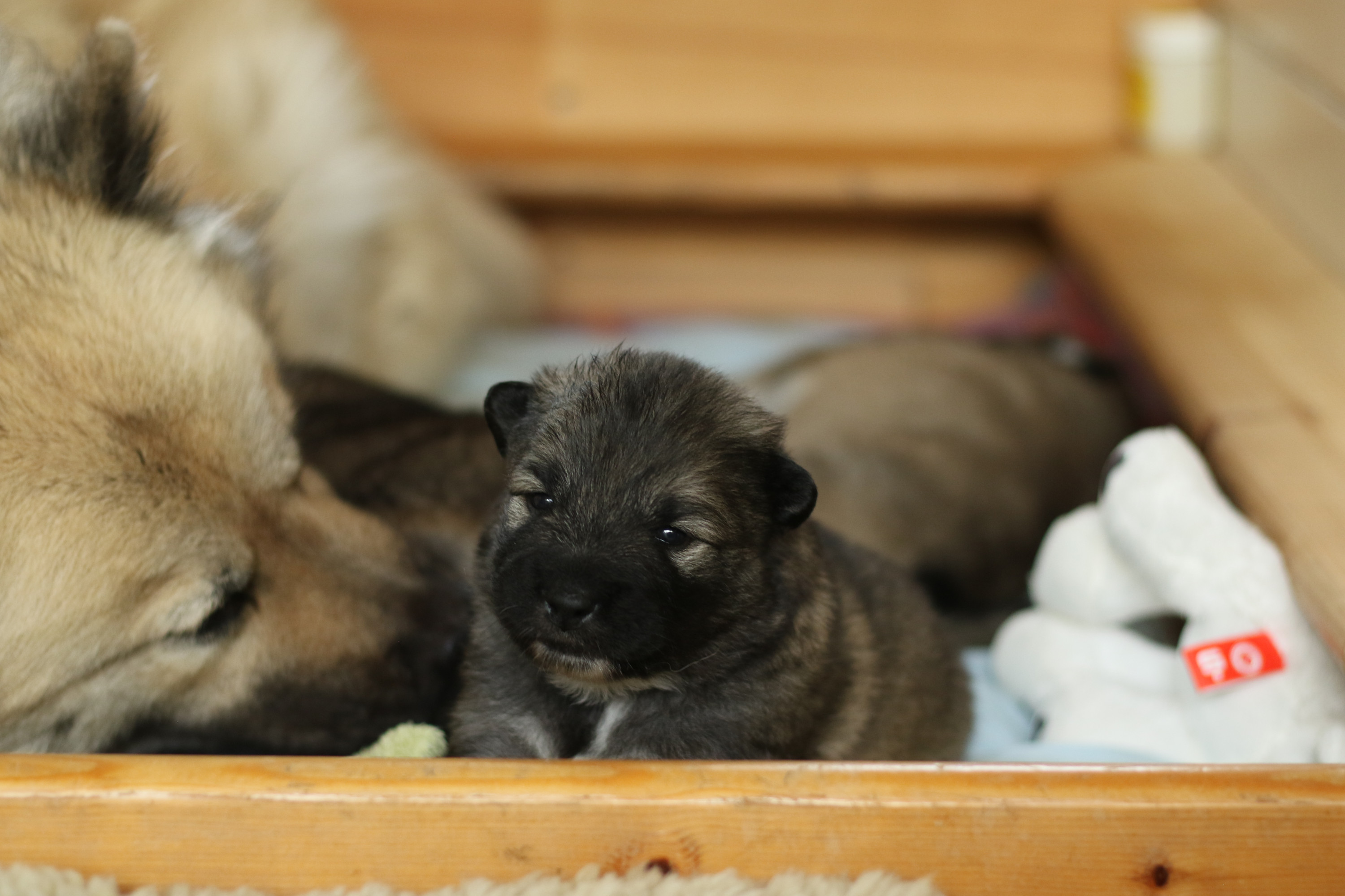 Unser Sorgenkind Cookie hat sich sehr gut entwickelt. Sie ist nun fast drei Wochen alt. Dafür haben wir leider nach nur vier Lebenstagen unseren einzigen Rüden verloren. Eine Obduktion ergab ein kompletten Organversagen ohne erkennbaren Grund.