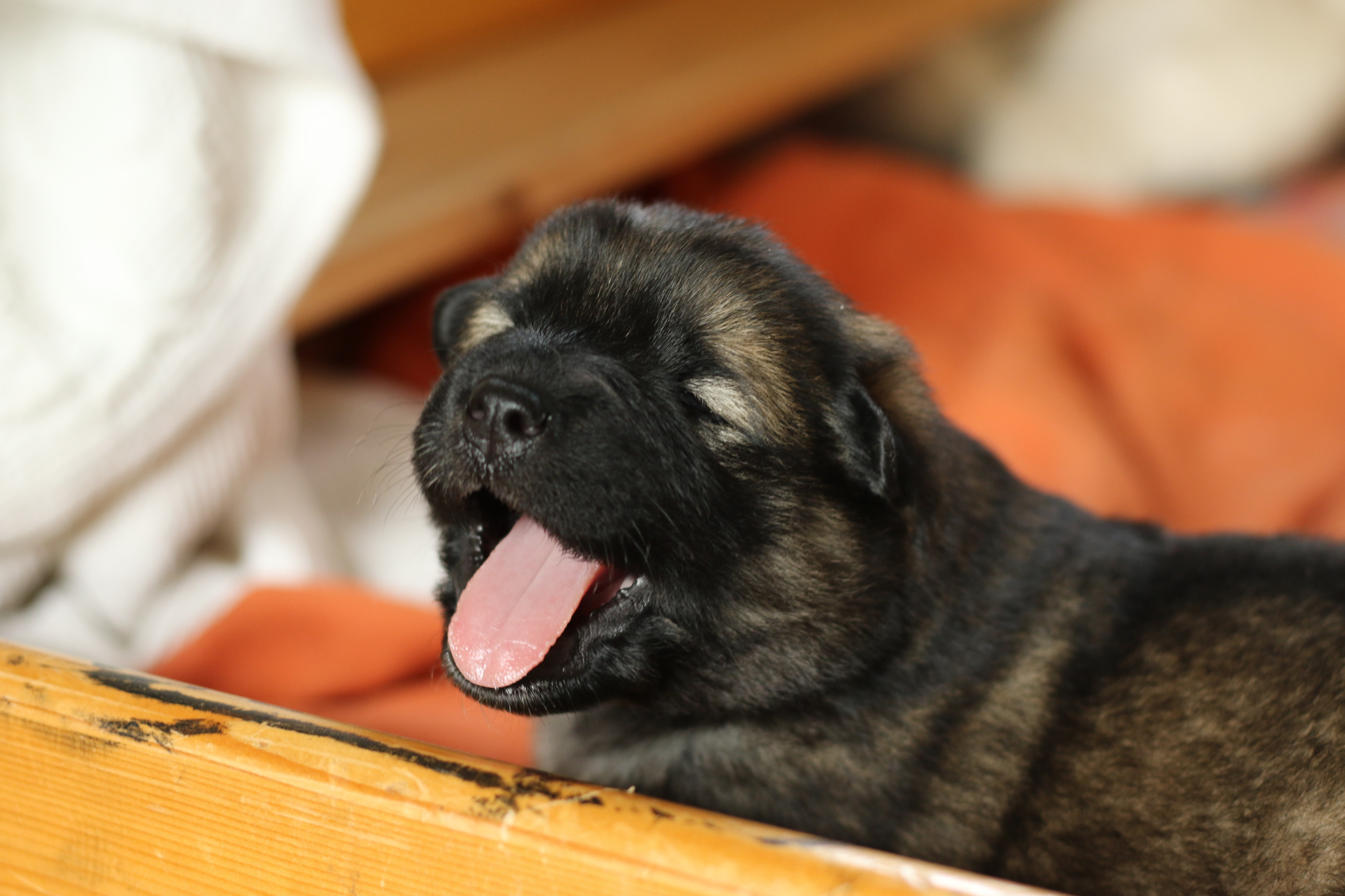 Noch sind bei keinem unserer Welpen blaue Flecken auf den Zungen zu sehen. Mal sehen, ob noch was kommt. Allerdings hat der Vater auch eine komplett rosafarbene Zunge und meine Ada hat nur eine gefleckte Zunge.