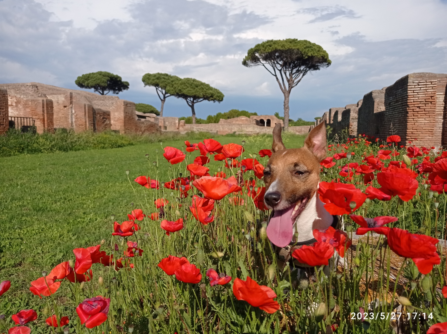Hunde dürfen die Ruinen besuchen (genauso wie die in Pompeji), offiziell nur kleine, aber ich habe dort auch schon Labradore und Schäfer gesehen.