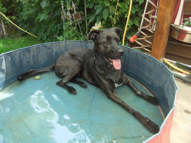 Aber er gibt sich auch mit Fliesen und Parkett in unserer, recht kühlen, Wohnung zufrieden :)@ Sophiemaus: Unser Pool ist seit letztem Jahr weg, weil der Platz anders genutzt werden musste