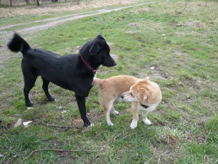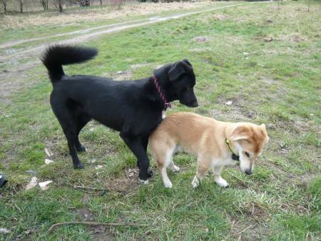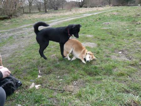 Was mich nun heute (wie auch schon letztens mal) gewundert hat:Der Retriever versucht ab und an mal, bei Henry aufzureiten, was wir natürlich unterbinden.