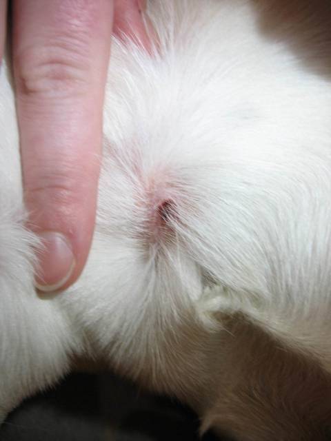 ich kann auf dem Bild jetzt nicht allzuviel erkennen, aber könnte es sein, dass dort eine Zecke war? Ist es warm? Wässert es etc.?