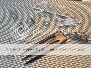 Mein ganzer über Weihnachten georderter Haarschmuck kam übrigens an und ich bin recht angetan. Eine Forke von MorgansMane in schwarz, die silberne Forke mit der Kugel, meine Winterwonder Flexi und die YouPins.