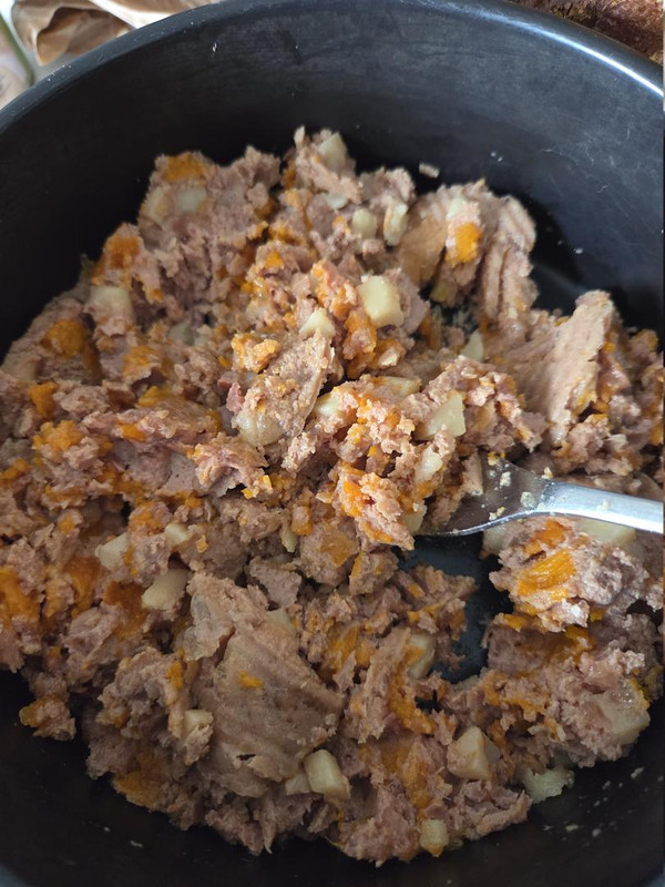 Den Gemüseanteil sieht man auch schön im Futter.Ich bin gespannt, wie es vertragen wird.