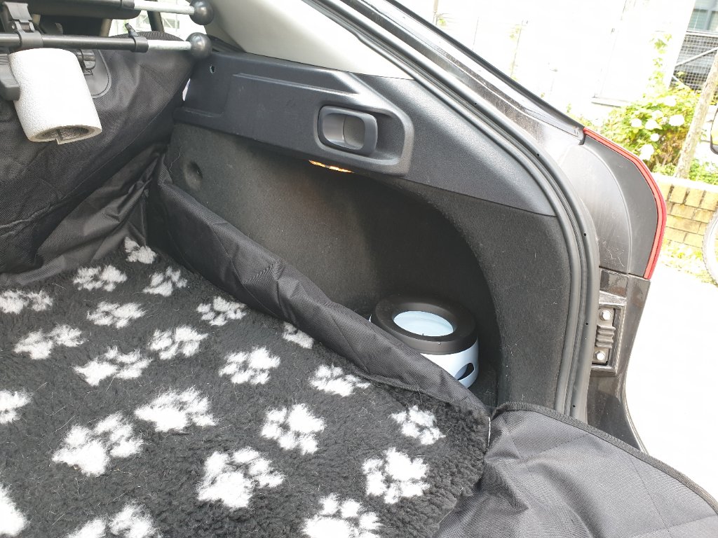 Einmal hatten wir sie drin um zu gucken ob sie passt und haben eine Probefahrt gemacht. Der Hund hat sich zumindest super entspannt drin, genauso wie in der Box im Kofferraum sonst