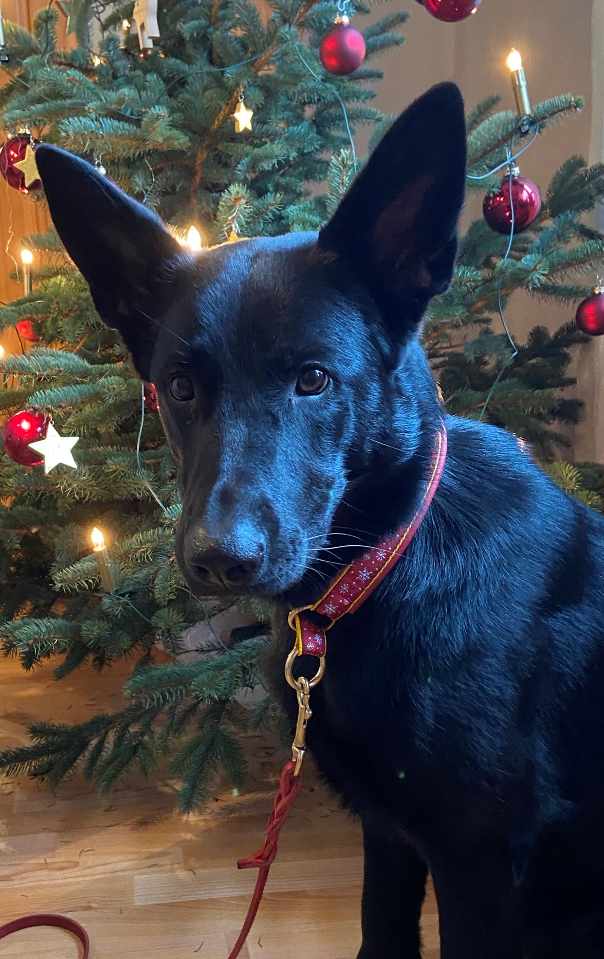 Unser Weihnachtshalsband + Weihnachtsleine. Das Halsband habe ich anfertigen lassen. Die Leine ist selbstgemacht.