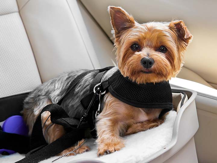 - Bei Fixierung am Sicherheitsgurt: Ein großer Bewegungsfreiraum kann Spitzenbelastungen auf den Körper des Tieres bewirken