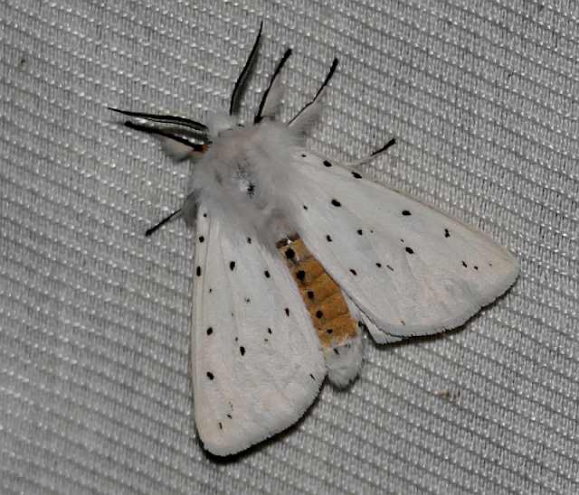 Weiße Tigermotten, oder auch breitflügelige Fleckleibbären, haben viele Tricks drauf, um sich Feinde vom Leib zu halten. Eine Methode ist diese hier: