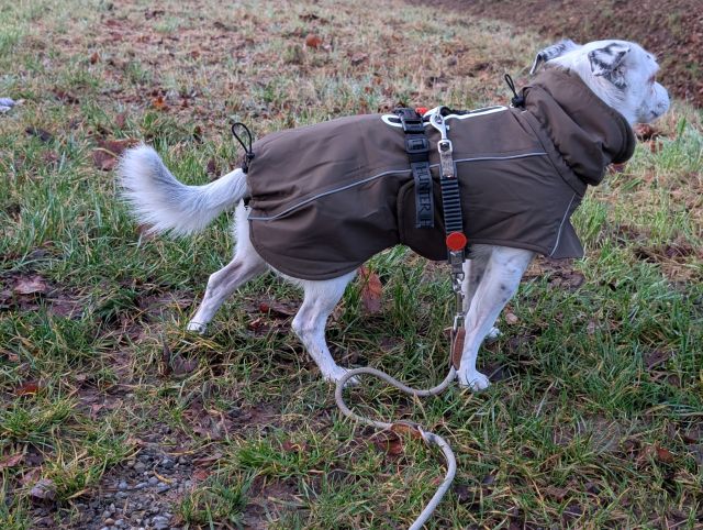 Hier der McTocs Glenndarcy Razzle Dazzle in Gr. 2. Passt perfekt, sogar mit unserem Feltmann-Geschirr darunter