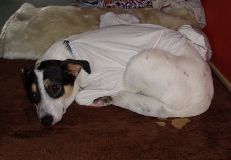 EDIT: *seufz* Habe Stanley jetzt ein T-Shirt drüber gezogen, damit er dort nimmer so direkt kratzen kann :/ wenn er da frisch gekratzt hat, sieht das ganz furchtbar dolle fies aus.