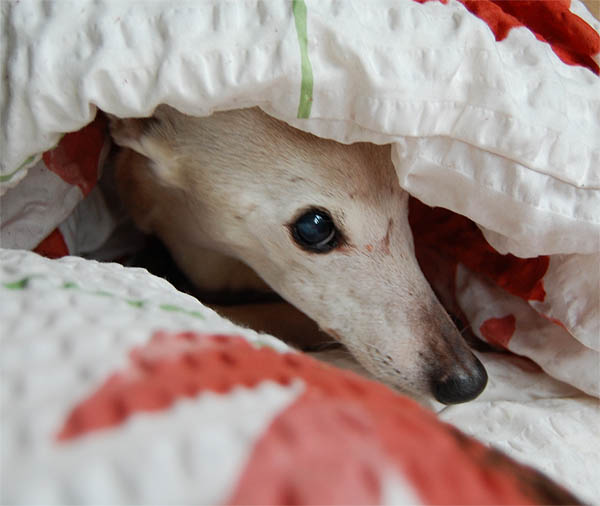 Mein altes Mädchen - dort, wo sie am liebsten ist - in Frauchens Bett.