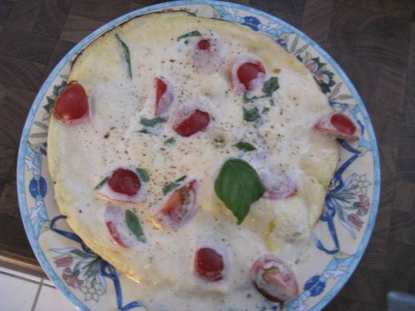 Bei uns gab es heute Omelett mit Mozarella und frischen Tomaten.