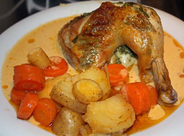 Flattervieh mit Kräuterfüllung und Ofengemüse