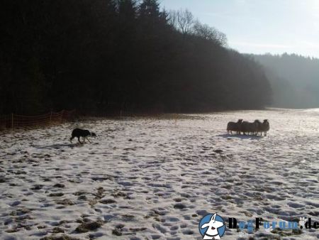 Und: will Forest da nicht auch mal ran ?Habt Ihr eigentlich ab und zu mal Probleme mit fremden Hunden, die nicht 'abwarten' gelernt haben und einfach so ihren Besitzern abhauen und in die Schafe preschen ? Ein Bekannter von mir in D hat Schafe und kann da ein Liedchen von singen.