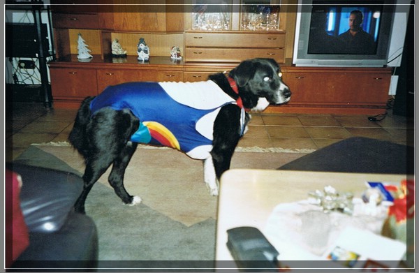 Dago hat damals nach einer Beißattacke mit großer Wunde einen alten Badeanzug getragen