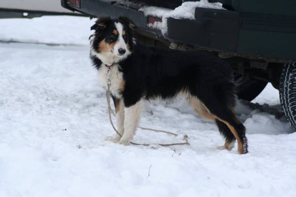 Aber er ist eben auch noch schmaler als die meisten Aussies und ist eben Black-Tri und nicht "bunt" wie die meisten Menschen sich Australian Shepherds vorstellen.