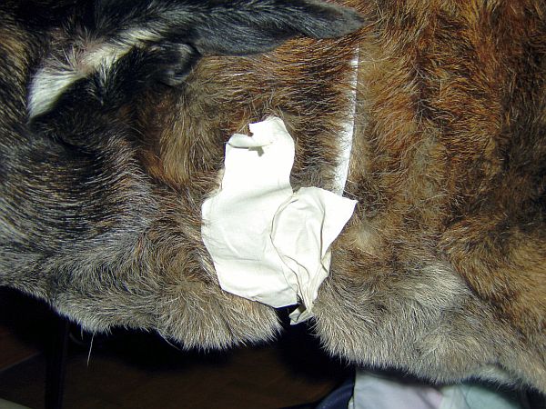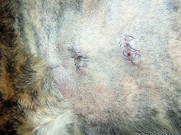 Eine Drainage hat Dusty zum Glück nicht, die Wunden sind alle vernäht.