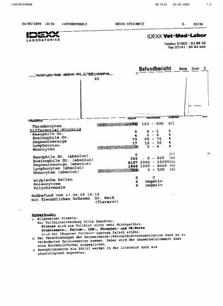 und bei dem rest kann ich leider die genauen zahlen nicht entziffernThrombocyten: 109 (Normal 150-500G/L)
