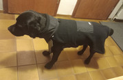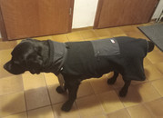 So, der Rukka Lucky X Fleece ist angekommen, Gr.65, Labrador Retriever Rüde, ausgewachsen.