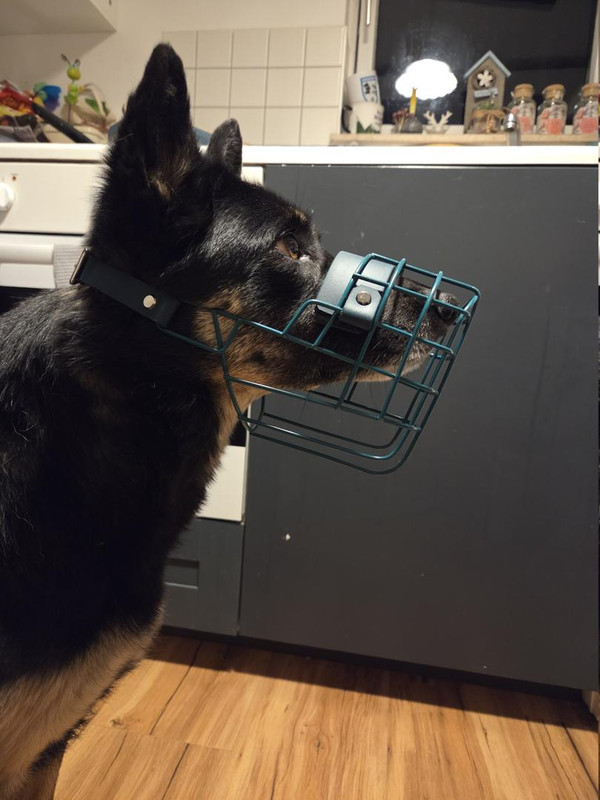 Der Maulkorb hat jetzt bis zum Ende des Polsters 9,4cm Innenlänge.