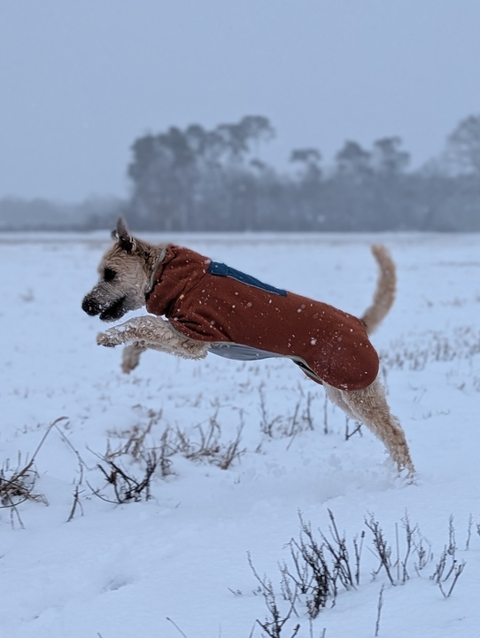 Unsere Standardausrüstung der letzten Tage war das Wollshirt von Hundlands und drüber den WoollyWolf. Das war wirklich perfekt, warmer Rücken, aber kein überhitzen und immer noch volle Beweglichkeit.