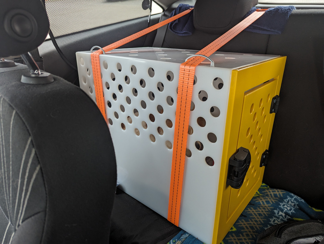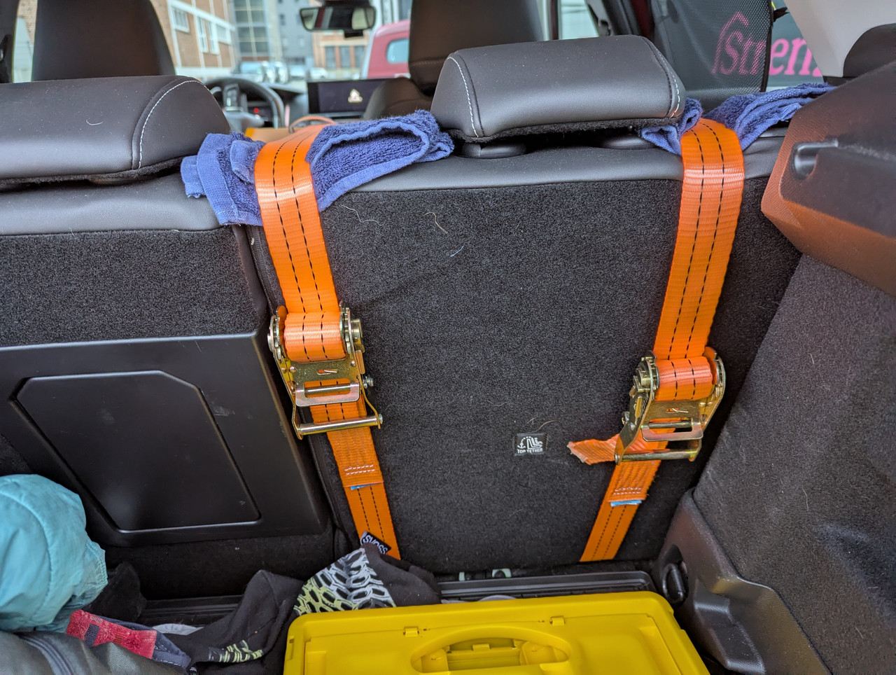 Das ist also quasi eine normale Standardbox (bzw wahrscheinlich trotzdem mit individuellen Maßen) die du auf den Rücksitz gepackt hast, oder ist da irgendetwas besonderes? Wahrscheinlich die beiden "Schlaufen" für den Zurrgurt die dort nicht wären? Die hast du einfach einmal um den Sitz gezogen?