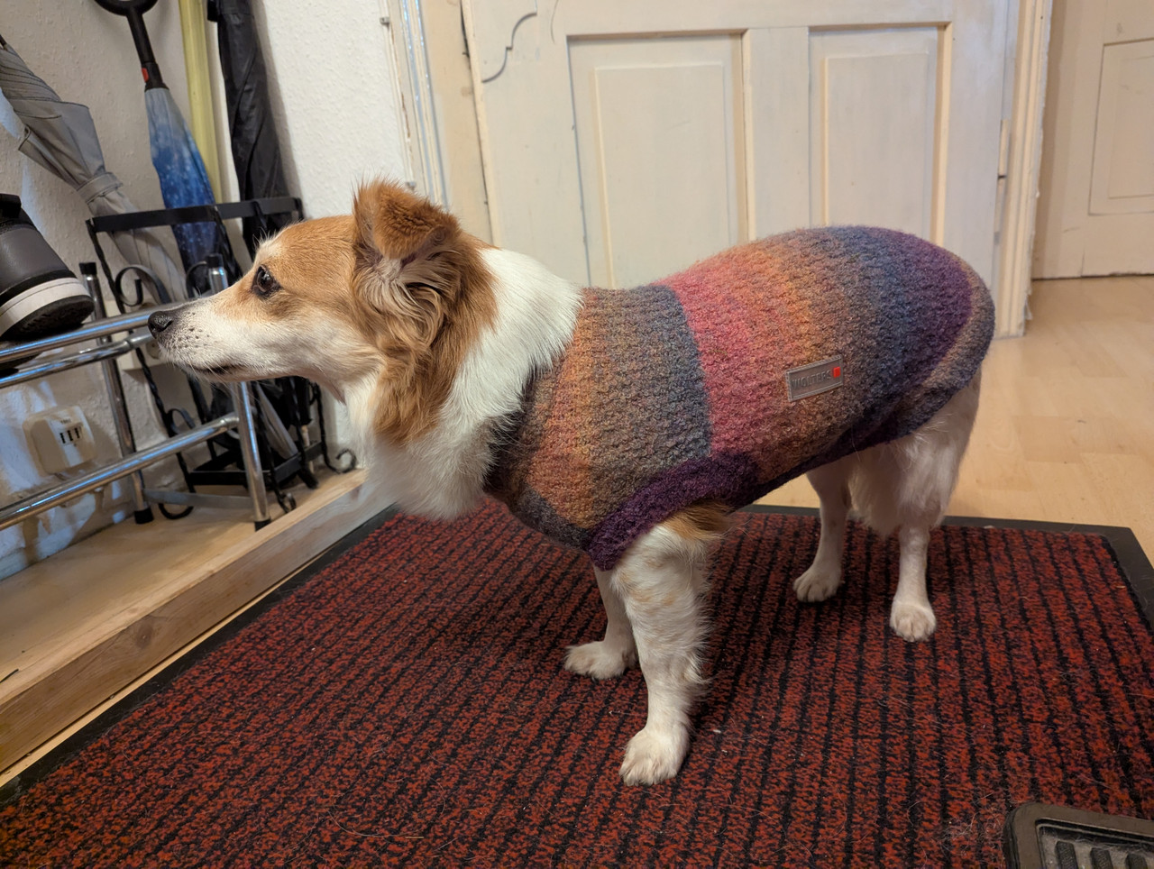 Die Pomppa Mäntel kenne ich nicht im Original aber wir sind mit dem Amundsen von Wolters sehr zufrieden. Am Hals mit Webpelz gefüttert mit Reißverschluss zum leichteren über den Kopf ziehen und langem Geschirrschlitz ebenfalls mit Reißverschluss. Den gibt es in sehr vielen Größen, im Zweifel würde ich die größere Größe nehmen. Außerdem hat er keine Beinschlaufen, die mag Theo nämlich gar nicht und auch Speedy fand die doof.